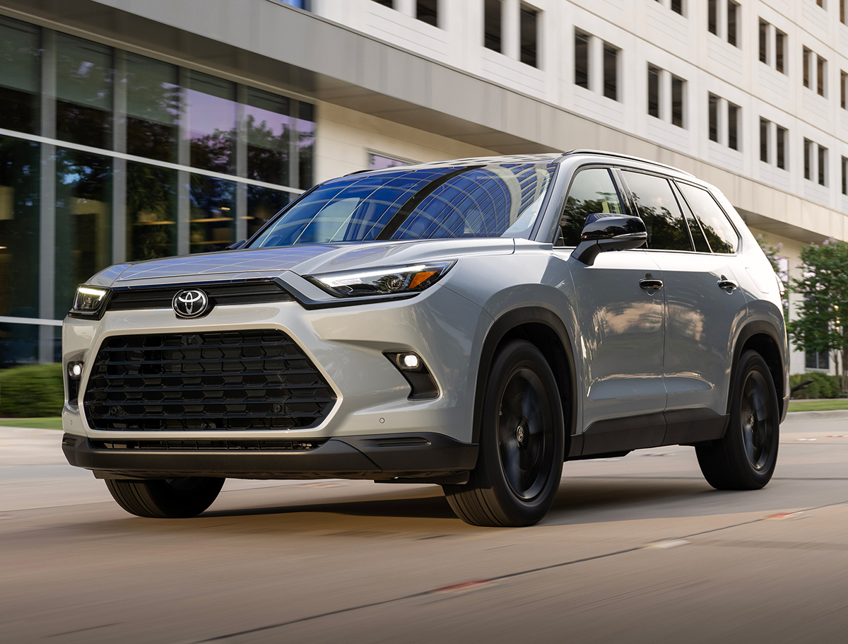 The 2026 Toyota Grand Highlander seats up to eight. It is available in a choice of gas, Hybrid, and Hybrid MAX powertrains in a choice of LE, XLE, Limited, Platinum, and Nightshade grades, with available FWD or AWD. The quiet cabin features acoustic glass on the windshield and front windows, and noise reducing materials throughout the vehicle, ample cup holders, and available second row bench or captain’s chairs. Standard features include a 12.3-inch touchscreen, three-zone automatic climate control with second- and third-row vents, and seven USB-C charging ports. A new Hybrid Nightshade edition with unique styling is available.